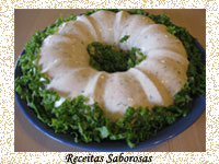 Cubra com papel-filme e leve à geladeira por 12 horas. Na hora de servir, desenforme em uma travessa e decore com as folhas de alface.